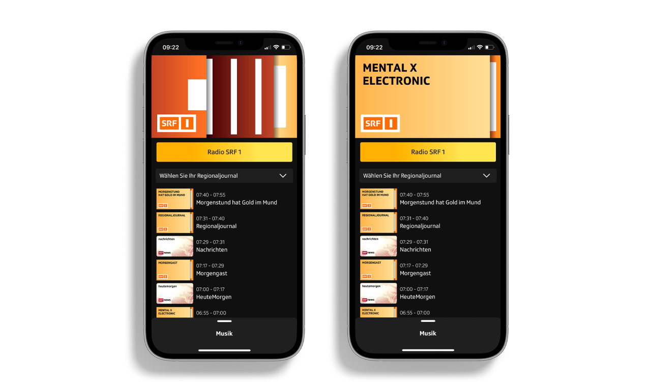 Mit einem frischen Auftritt und charakteristischer Eigenständigkeit innerhalb der SRF Senderfamilie will sich der Schweizer Radiosender SRF1 programmgerecht positionieren. Als visuelle Idee wurde das tägliche Radioprogramm in seinen unterschiedlichen Intensitäten und entlang des Tagesablaufs in fortlaufenden Animationen visualisiert.